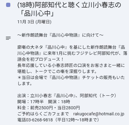 11月17日(月) 18:00 【立川流広小路亭夜席 特選落語会】× withvol.2n [会場]東京・お江戸上野広小路亭 [木戸銭]予2000円/当2500円