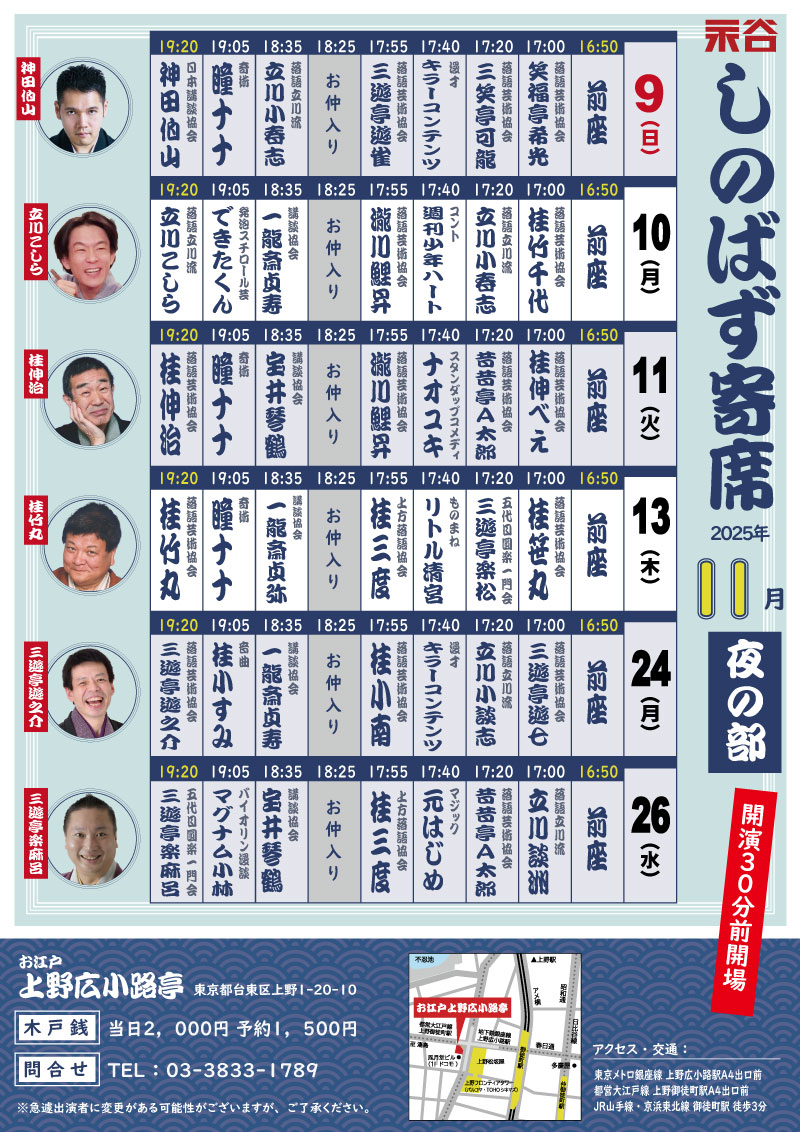 11月10日(月) 16:50 【しのばず寄席】× . [会場]東京・お江戸上野広小路亭 [木戸銭]予1500円/当2000円