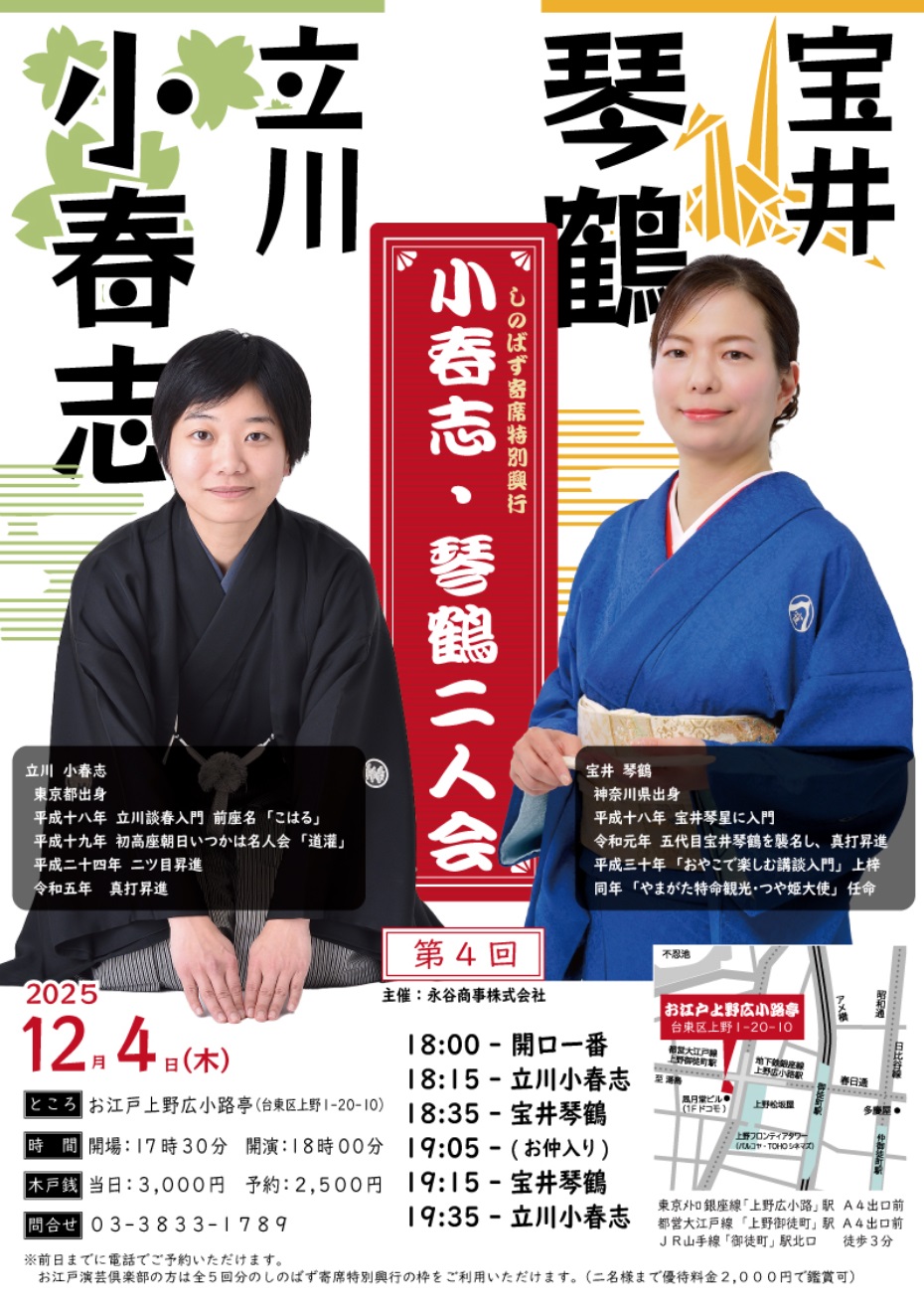 12月11日(木) 19:00 【冬の小春志】 [会場]神奈川・横浜にぎわい座 [木戸銭]指定3200円0000