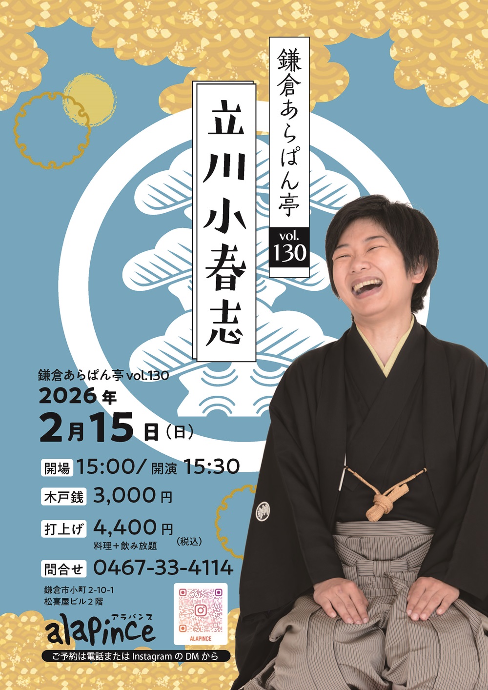 02月15日(日) 15:30 【鎌倉あらぱん亭vol.130】 [会場]神奈川・鎌倉アラパンス [木戸銭]3000円(全席自由・要予約)打上4400円